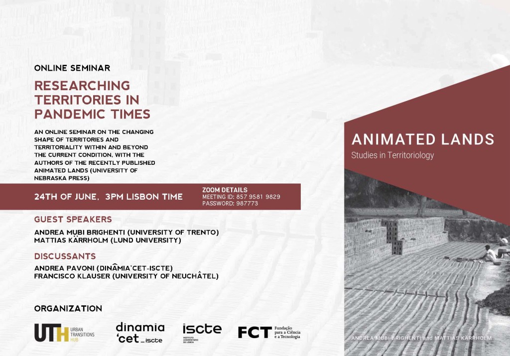 The Urban Transitions Hub of ICS-ULisboa and DINÂMIA’CET – ISCTE organise an online seminar on the changing shape of Territories and Territoriality within and beyond the current condition, with the authors of recently published book Animated Lands. Studies in Territoriology (University of Nebraska Press)